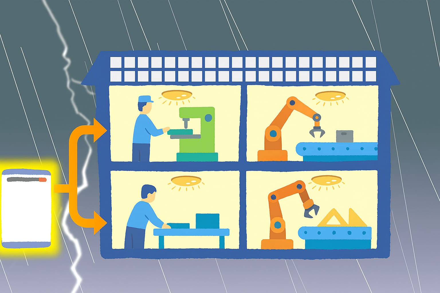 - 製造業: 生産ラインの一部や品質管理に関わる機器を稼働させ、損害を最小限に抑える。