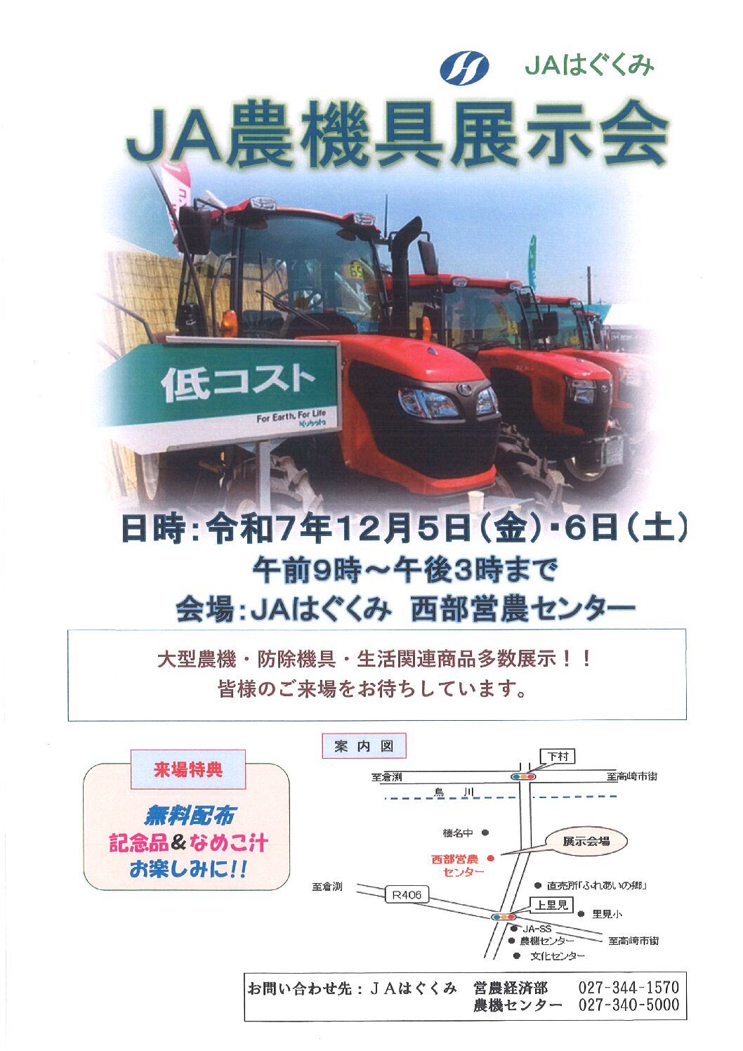 【12/5・6】JAはぐくみ様主催 JA農機具展示会